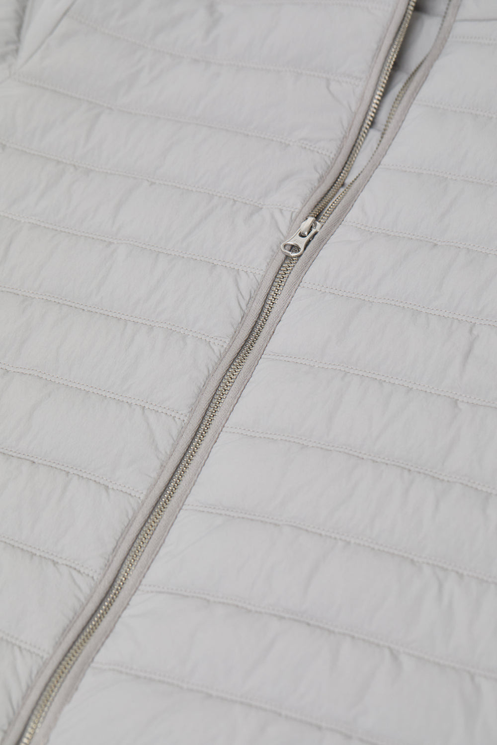 The quilted zip jacket showcases a regular length with a slim silhouette. Crafted from water-repellent recycled nylon, it features a light crinkle texture and matte finish with an incredibly lightweight feel. Twin-needle quilting details reference workwear heritage, while zipped side pockets and a shaped hem with drop provide functional elements. The eco-conscious design includes Thermore's lightweight ecodown fiber padding as a sustainable down alternative. + Light recycled nylon+ Nylon (recycled) 100%+ Weight: 105 gr / Dye type: Piece dyed / Water impermeability: Water repellent / Feature: Water repellent nylon with a light crinkle and matt look. The hand-feel is super light. Eco aspect: 100% recycled nylon.