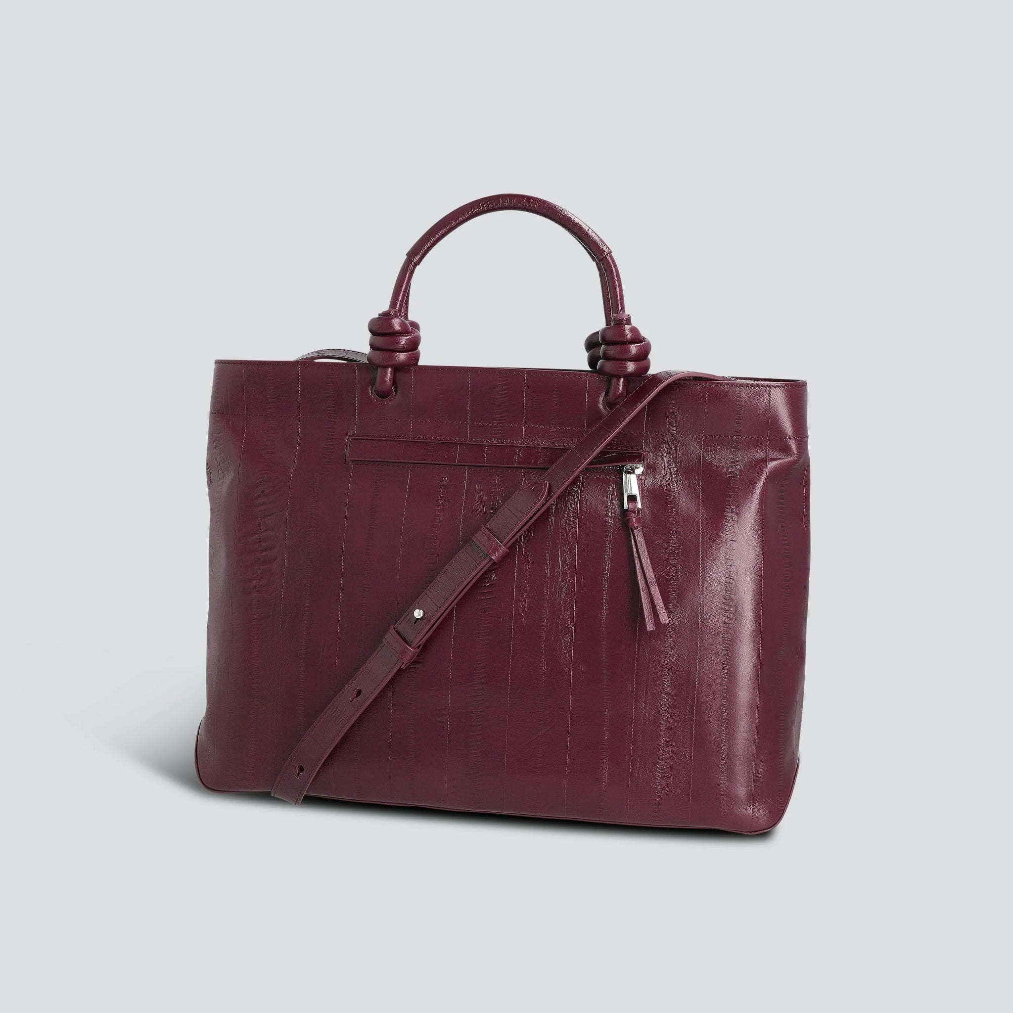 - Gemaakt van 100% Italiaans kalfsleder met reliëf van paling en een matte afwerking, dat behandeld moet worden met een transparant lederverzorgingsproduct.