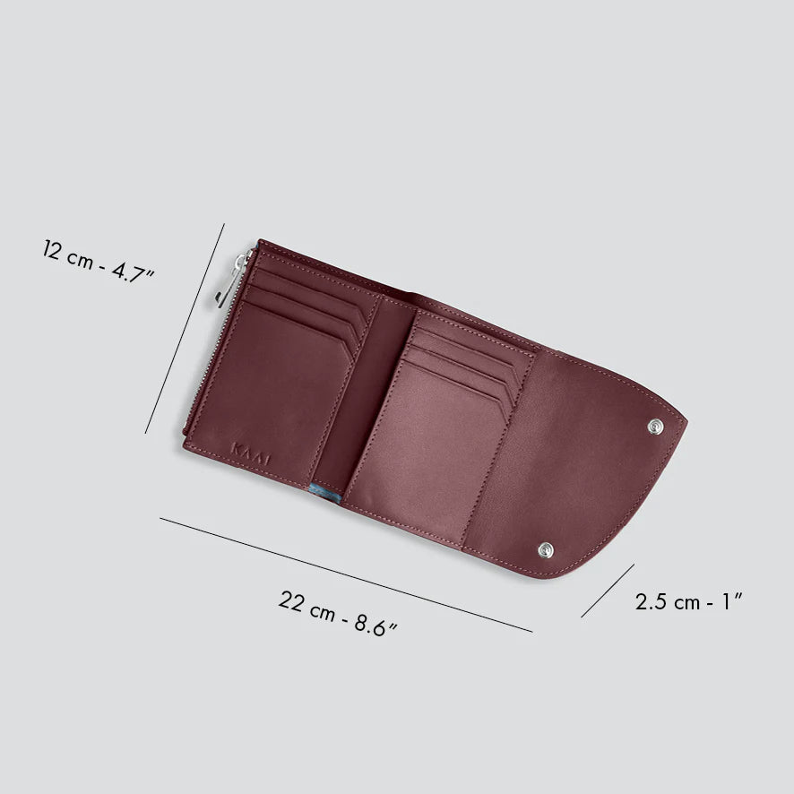 - Eén groot open vak over de gehele breedte van de portemonnee om biljetten in op te bergen.