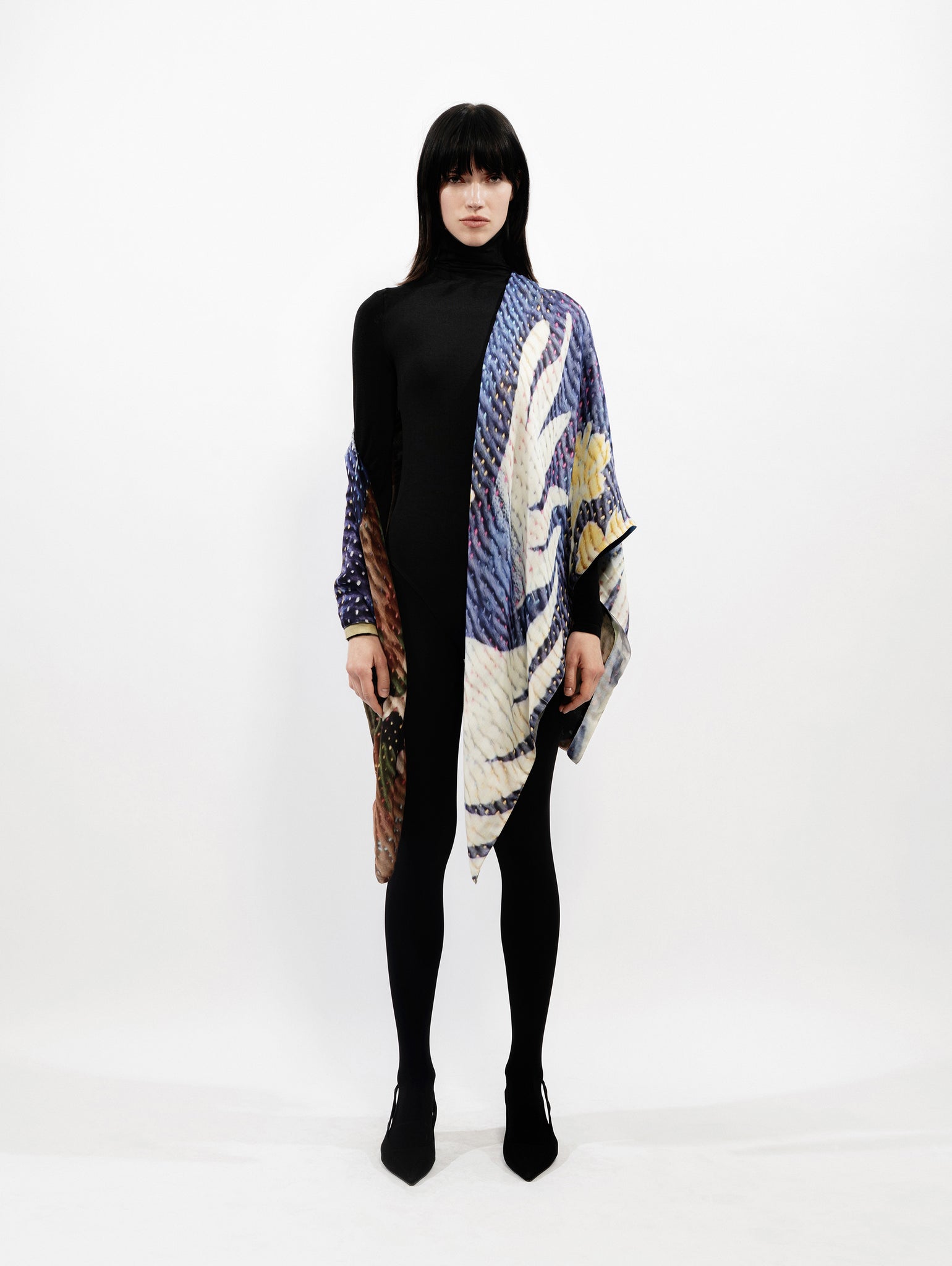 Deze sjaal van Talking Walls is een artistiek statement piece dat luxe combineert met expressiviteit. Gemaakt van een hoogwaardige blend van 80% modal en 20% zijde, voelt de sjaal zacht en luchtig aan op de huid, met een subtiele zijdeglans voor een verfijnde uitstraling. De double face constructie maakt het ontwerp extra bijzonder: beide zijden tonen een ander patroon, waardoor je eindeloos kunt variëren in styling. De handgestikte details voegen een ambachtelijke, unieke touch toe. Ideaal als accessoire bij een eenvoudige outfit, of als kleurrijk accent bij neutrale tonen. Materiaal: 80% modal, 20% zijdeConstructie: Double face – twee dessins in één sjaalAfwerking: Fijn handgestikt detailKleuren: Multicolor – onder andere paars, okergeel, camo en nachtblauwFormaat: Medium/large (afmetingen niet opgegeven)Wasvoorschrift: Alleen stomen Een sjaal die niet alleen warmte biedt, maar ook een verhaal vertelt — typisch Talking Walls.